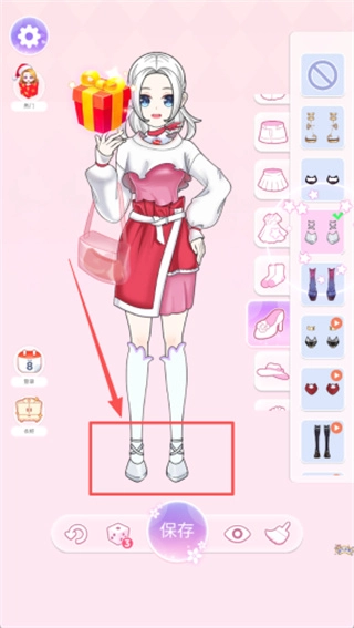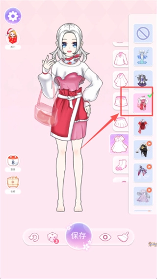 完成整体造型设计后,别忘了点击界面底部的保存按钮,把当前的搭配方案保存到收藏夹里。