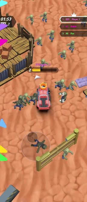 驾驶时可通过方向键或虚拟摇杆操控方向,长按油门键即可加速并碾压敌人。