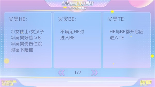 这款游戏不存在固定的故事结局,玩家能够选择一位心仪的男主展开攻略,从而解锁这位男主的专属剧情。在此过程中,玩家还需依靠自身情商,回答一系列有助于增加好感度的问题。