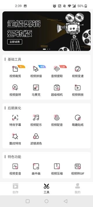 3、这款剪辑软件大家可自由使用,后续还会上线更多剪辑功能供大家使用。