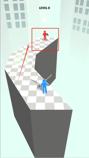 在初始关卡“LEVEL 0”里,你要操控身着蓝衣、手持长剑的角色,顺着平台路径往上方移动,过程中得留意躲开红色的障碍物,等靠近被红框标记的目标角色时,就能触发互动环节了。