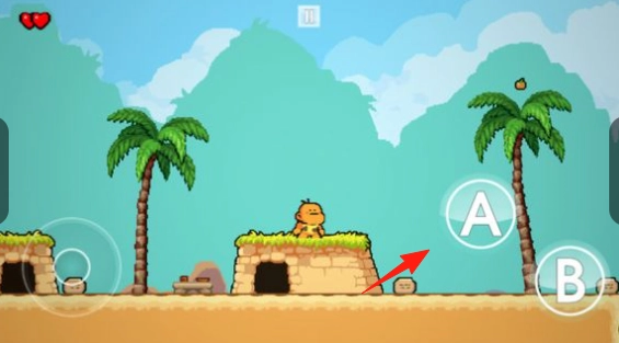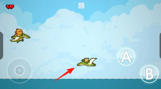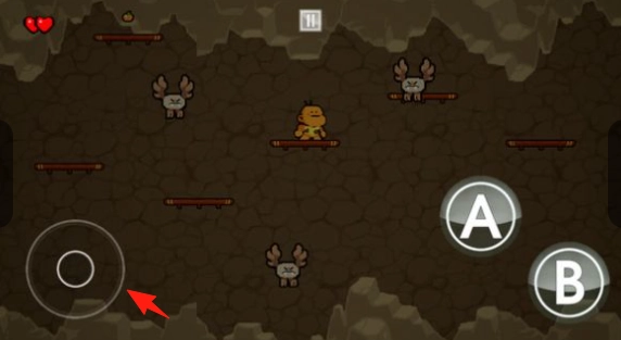 在洞穴场景中,通过左侧摇杆来操控小恐龙,使其移动以躲避蝙蝠这类怪物,而A/B键则用于进行互动操作,比如攻击和跳跃。