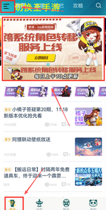 2、切换到QQ飞车专区,在资讯页找到跨系统角色转移服务入口。