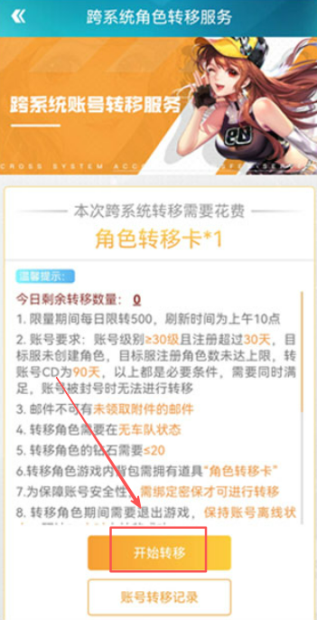 3、查看当日剩余转移名额数量,每天上午十点准时刷新记得准时参与。