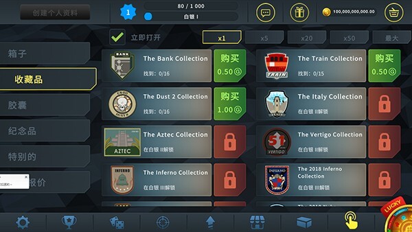 开启各式各样的盒子来收集皮肤。依据玩家当下的CS等级,其一次最多能够开启5个箱子。