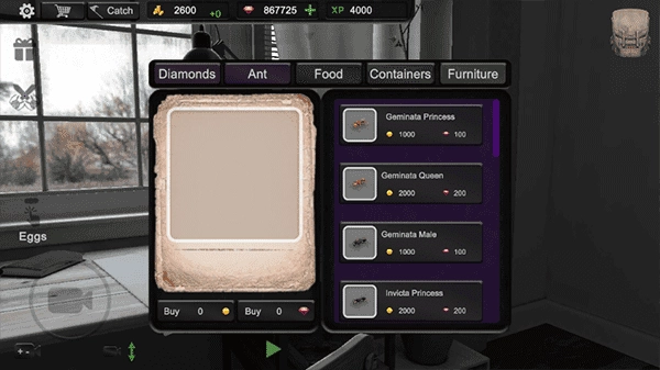 4、在蚁巢商店中可以解锁并购买不同种类的蚂蚁伙伴