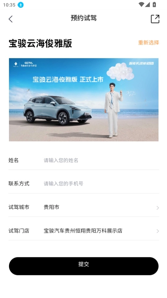 4. 接下来,你只需依次填写姓名、联系方式、意向试驾城市、意向试驾门店等信息,最后点击“提交”按钮就可以了。