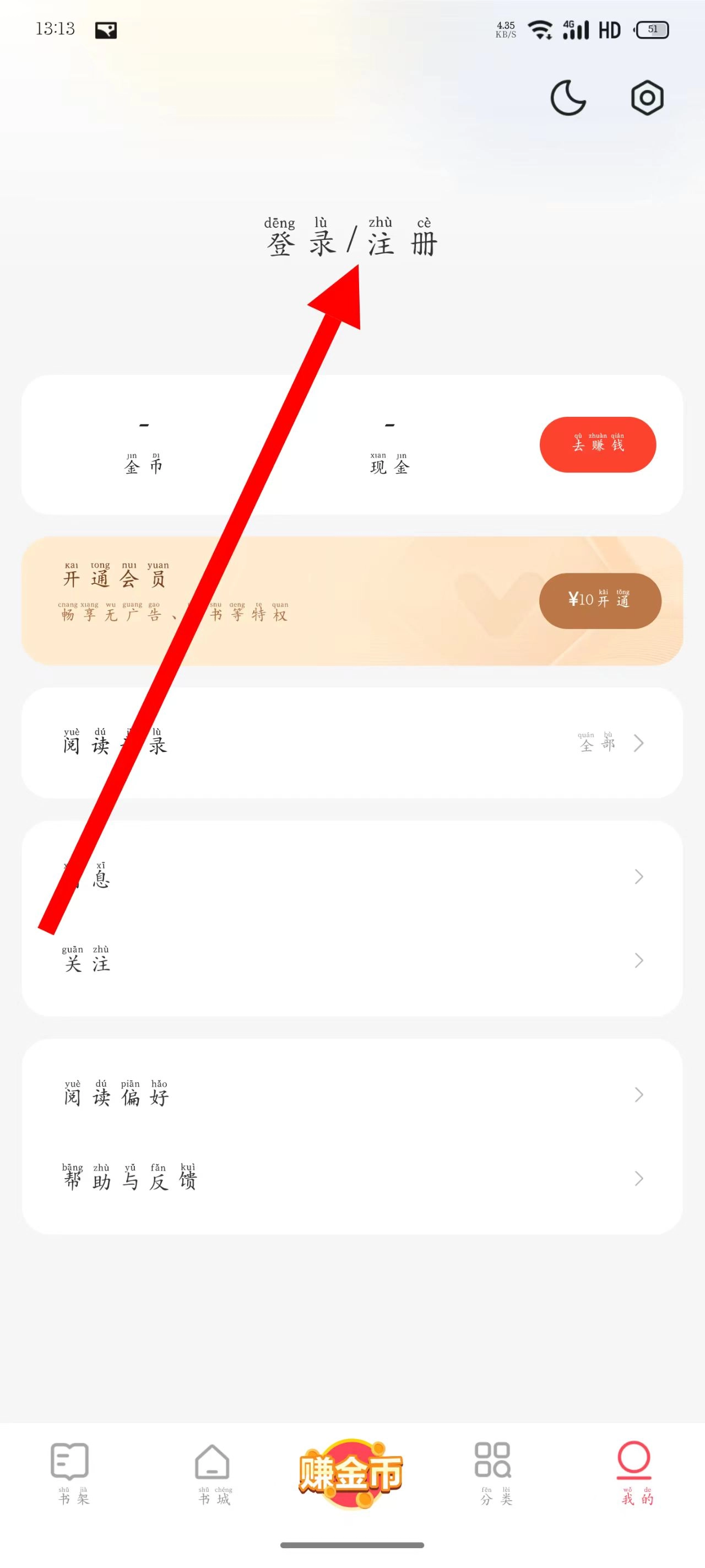 2、在我的页面,点击登录注册。