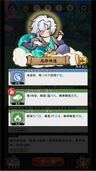 3、赢得战斗后,玩家可在三个技能中供选择其一。