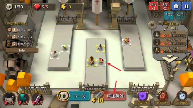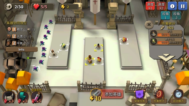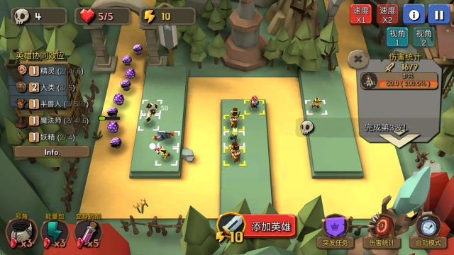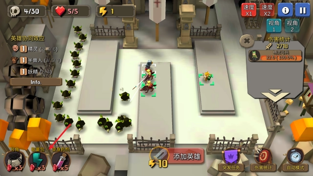 2、相同的英雄可以合成升级为更高等级的英雄,通过消灭敌人来获取召唤英雄的能力,这样循环往复就能打造出更强大的防御体系。