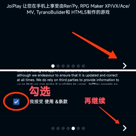 4、点击右下角的按钮来继续后续操作,并确认同意相关协议内容。