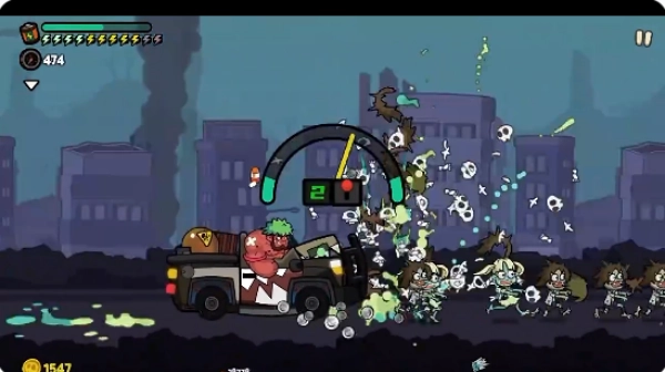 2、小分队队员驾车出发,在移动过程中粉碎沿途的僵尸,一路闯关冒险,收集大量金币。