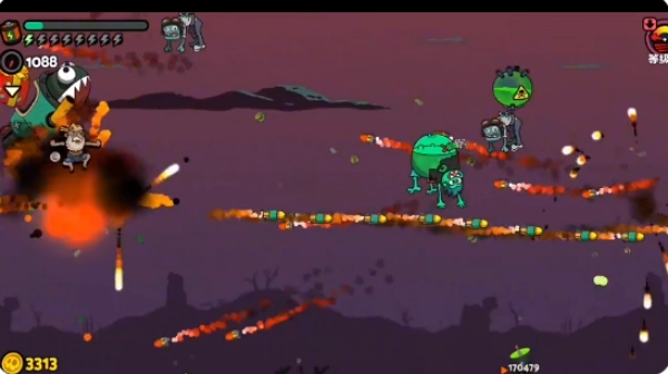 3、弹射到僵尸的上方,持续朝下方的僵尸射击,精准消灭大量僵尸。
