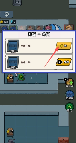 4、我们也能运用右侧的技能,像收益翻倍、加装防盗网之类的。