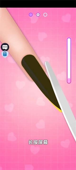 2、长按屏幕可以修理不同的指甲形状;