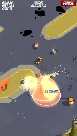 2、任何物体只要发生碰撞就会立刻爆炸,我们可以利用这一特性让警车自行引爆,诱导它们互相撞击