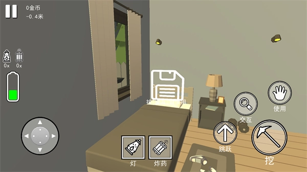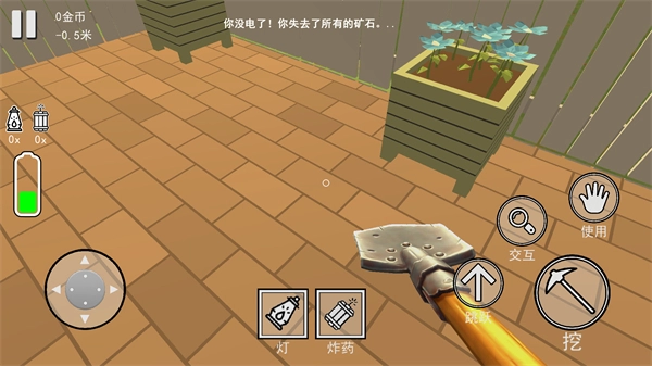 在掘地寻宝的过程中,要留意左侧的电量指示,得在电量用完之前返回地面休整,不然你挖到的矿材就会全部丢失!