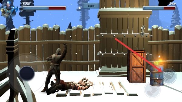 在战斗过程中,借助场景里红箭头所指的油桶,向敌人发起攻击,同时规避敌方造成的伤害,将对手成功击溃,从而推动剧情继续发展。