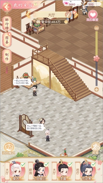 1、掌柜能够收集各类家具,按照自己的喜好随意布置房间,当凑齐完整的家具套装时,还能为所有伙伴带来属性方面的加成。