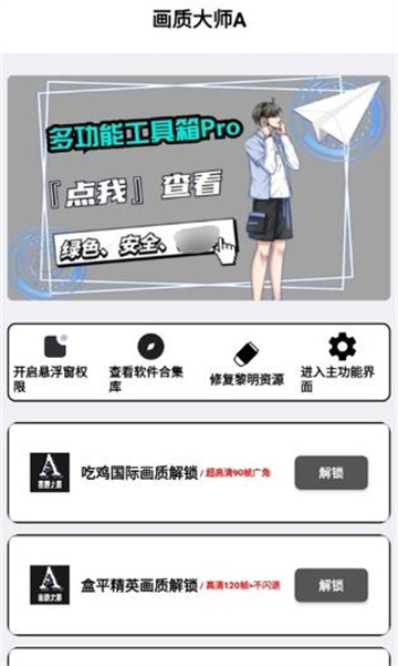 1、进入画质大师A软件后,大家可以挑选需要优化画质的游戏,选好后点击旁边的“解锁”按钮即可。