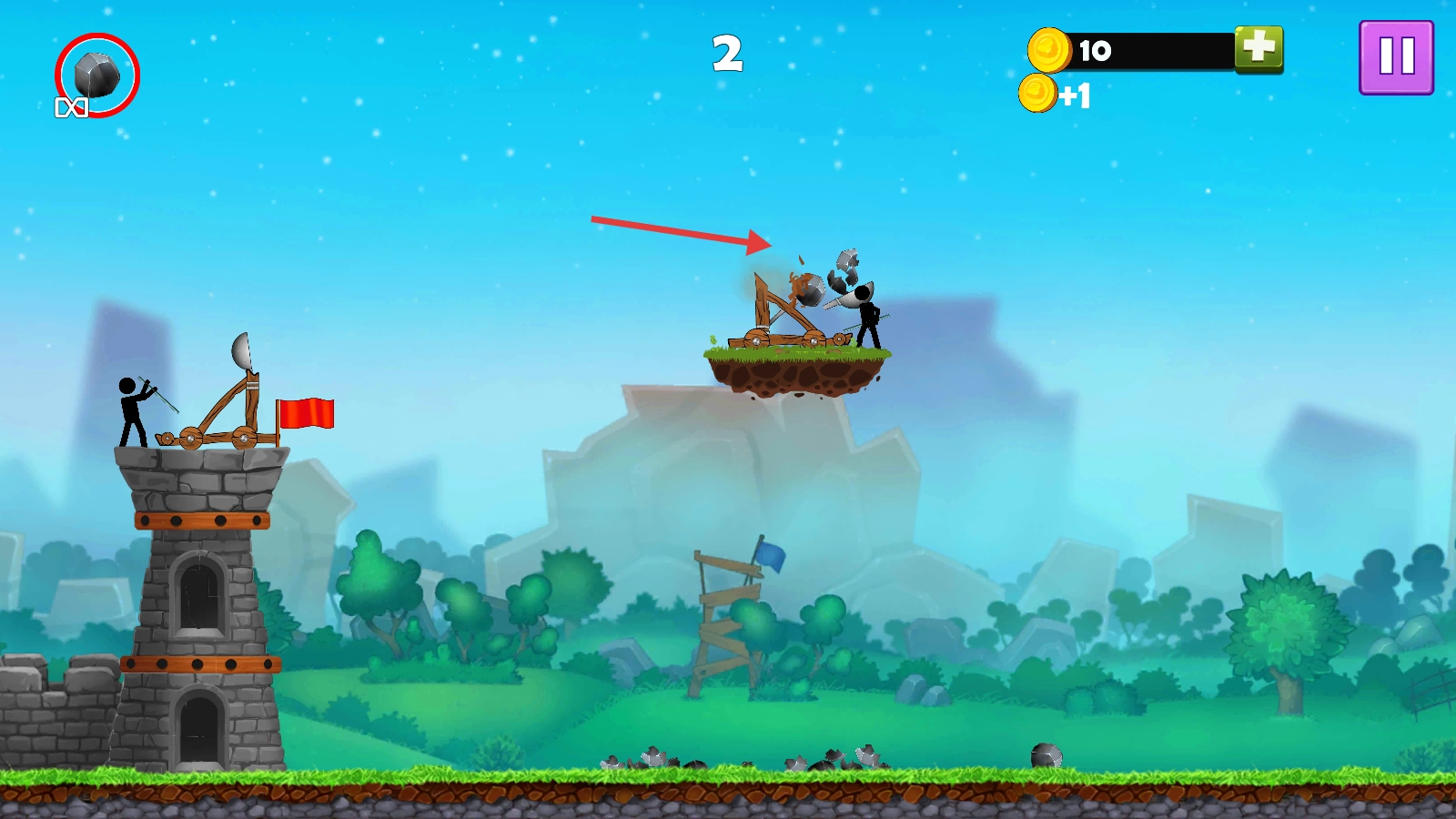 发射【黑色石块】,精准击中敌方【投石机】,损毁其攻击器械,降低威胁。
