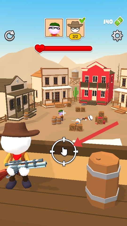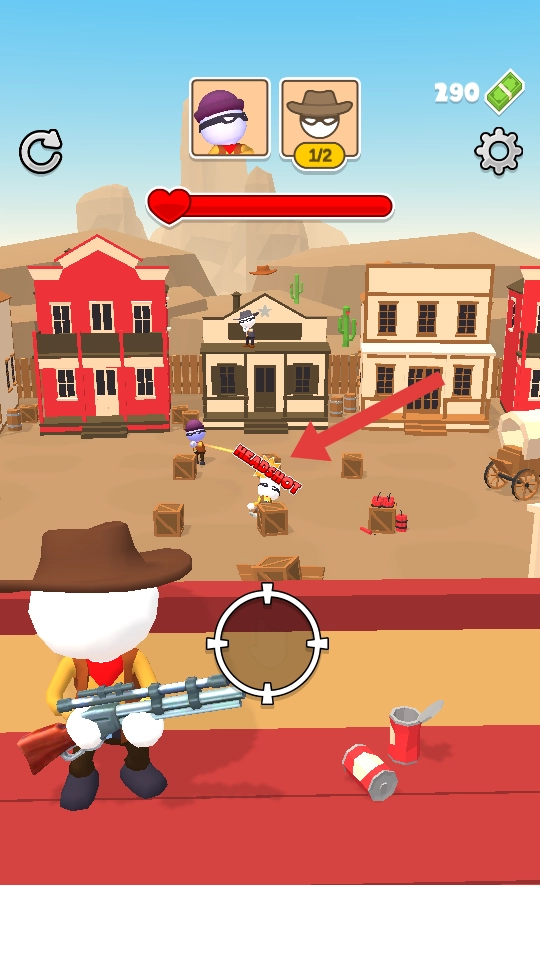 西部守卫主题与隐蔽战斗机制:核心特色围绕“守卫西部城镇和平”展开,玩家需击杀城镇中的布娃娃土匪才能突破难关,而敌人们会主动反抗,隐藏好自身位置。