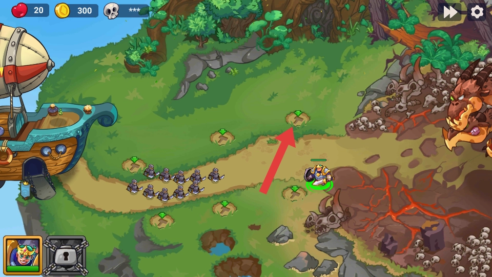 建造带有绿色箭头标识的士兵营地,生产士兵来补充战力以阻挡敌人,同时观察金币的消耗情况,合理规划建造顺序,确保资源不会被浪费。