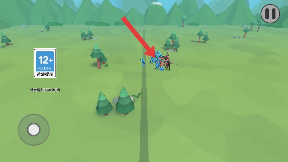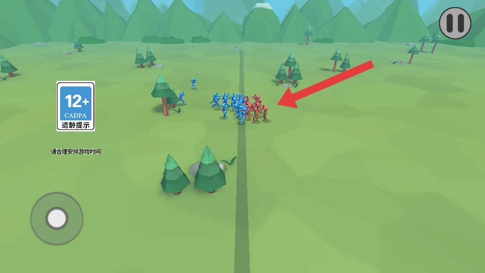 先留意红蓝士兵一开始的分布情况和数量,借助左下角的操控按钮,指挥自己这边的士兵向对方发起攻击,刚开始可以把兵力集中起来突破敌方防守薄弱的地方。