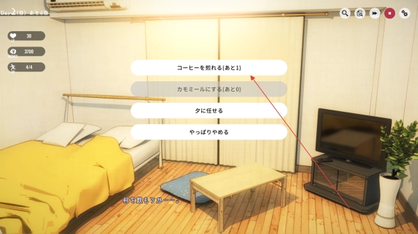 当遇到像泡咖啡这类互动选项时,挑选那些可以体现出关怀的选项,这样就能提升少女对你的好感度。