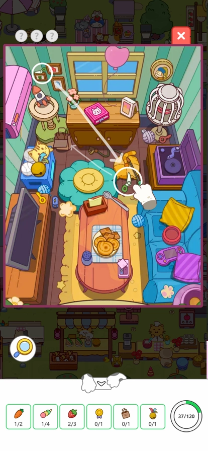 3. 玩家能够借助提示、放大镜之类的道具来协助查找,不过使用这些道具会耗费对应的游戏币或者能量。