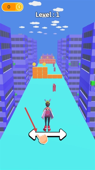 开局准备阶段:进入Level1关卡后,操控角色(初始状态为跑步),通过左右滑动屏幕切换行进道路,避开途中的各种障碍。