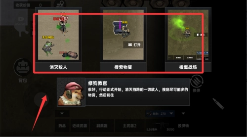 进入游戏后,先跟着狗狗教官完成基础训练,熟悉射击、移动以及掩体切换等操作,为战斗打好基础。