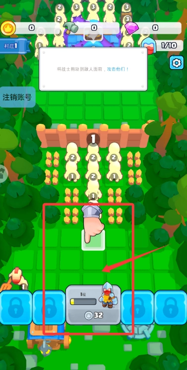 通过拖拽的方式把招募的士兵安排到指定的战区,妥善规划防守阵型。
