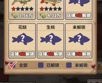 3、解锁成就赢取奖励 游戏内设有各类成就任务,完成这些任务既能积累经验、提升店铺等级,还可获取丰厚的金币奖励,助力鱼铺的后续升级与经营。