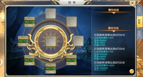 玩家收集多只宠物后,尽管每次只能上阵一只,但多余的宠物并非毫无用处——它们可以参与宠物助战。组战系统不仅能让助战宠物提供基础属性加成,还会根据助战宠物的品质额外赋予属性增益。
