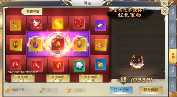 当然,要是有些玩家平时玩游戏的时间不多,或者一时忘了(获取途径),游戏里还准备了一种简单直接的获取方式,那就是——宠物寻宝。
