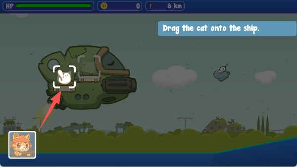 4.把猫猫拖到飞船上