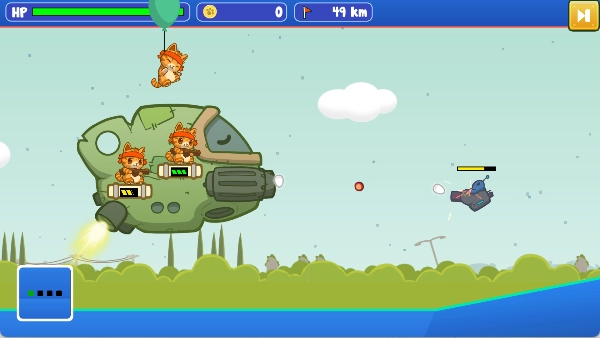 决战喵星的卡通画风十分有趣,每个角色都萌趣十足,猫猫替岗时乘着气球升空的设计也很有创意,是一款相当不错的游戏。
