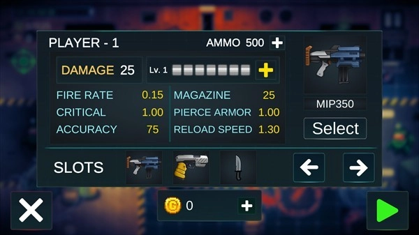 4、持续闯关能够积累金币,进而用这些金币对武器和角色进行升级。