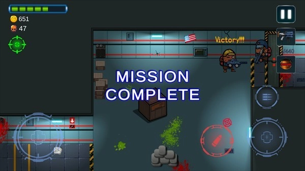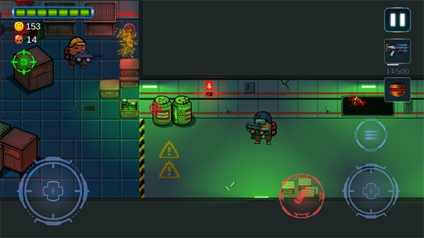 3、游戏过程中,左侧的虚拟摇杆可操控角色移动,右侧的按钮则用于瞄准和开火,整体操作简单,容易上手。