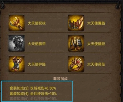 5件未经过任何强化的金色大天使装备,依旧能够触发套装加成(4)的效果。要是身上集齐6件金色大天使装备,就能激活最下方套装加成(6)所对应的属性了。