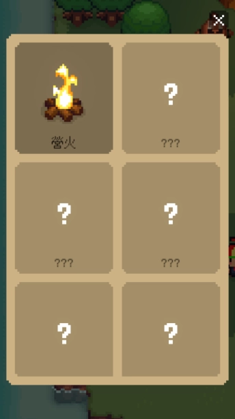 3、游戏过程中需要建造各类建筑,在初始岛屿的左侧区域会放置着一个木桶,将其打破就能获取营火的配方,而左下角的功能按钮则可用于查看当前能够建造的建筑种类。
