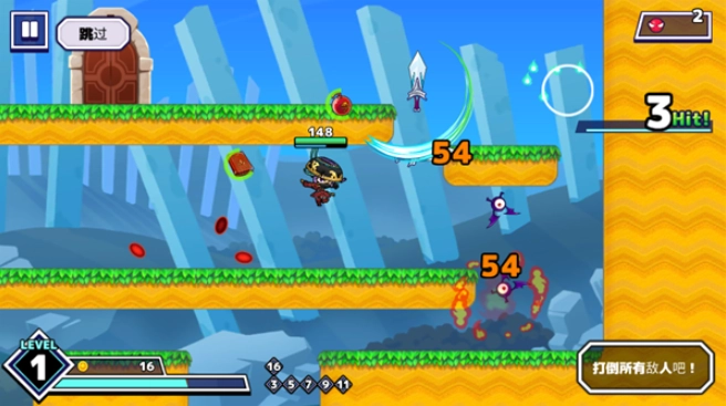 武士X十刀流和不少使用虚拟摇杆的平台跳跃游戏不一样,它采用了一套独特的滑屏移动操作方式,无论是移动、跳跃还是加速下降,都得依靠滑屏来完成,相当新颖。