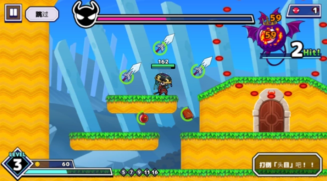 武士X十刀流是一款融合了平台跳跃与冒险解谜元素的游戏,你将化身武士,凭借精准的操作与策略突破重重关卡,而武器和道具的助力在这段旅程中同样关键~冒险路上你会收集到各式各样的武器,每种武器都具备独特的攻击效果,当你进入武器的攻击范围时,它便会自动发起攻击,十分便捷。