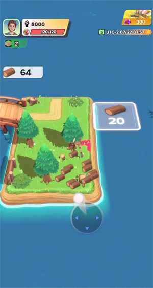 1、进入游戏后,玩家通过滑动屏幕操控摇杆来控制角色移动,当角色靠近树木时,系统会自动完成材料的收集。