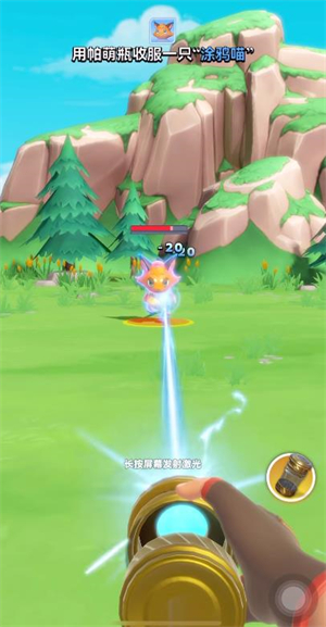 3、遇到帕尔蒙时可触发战斗,进入战斗状态后,按住屏幕即可借助帕萌瓶发起攻击;待帕尔蒙的血量下降至特定阈值,便能将其收服。