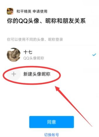 3、在QQ授权界面点击【新建头像昵称】。