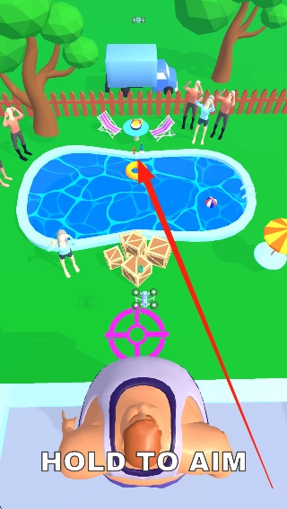 专注有时会破坏乐趣:在接下来的场景里,一心操控角色去砸毁目标物品,不管有没有泳池接着,都能顺畅操作,尽情享受解压的快感。