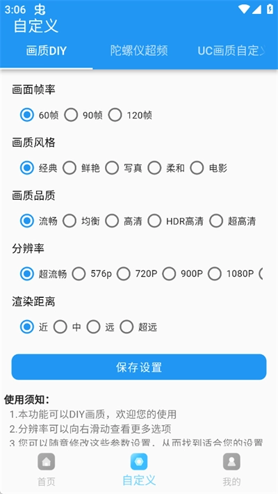 在画质魔盒画质助手这款软件里,除了能实现最基础的画质优化功能外,还可以让你对陀螺仪、灵敏度等参数进行自定义设置。