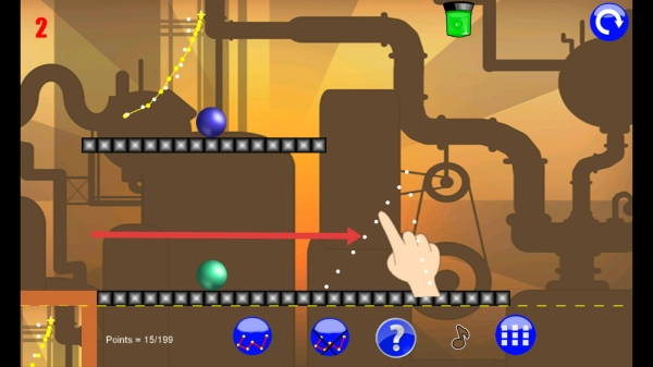 用手指在屏幕上划出线条,为小球搭建移动的路径,指引小球拾取道具,成功抵达目标地点。